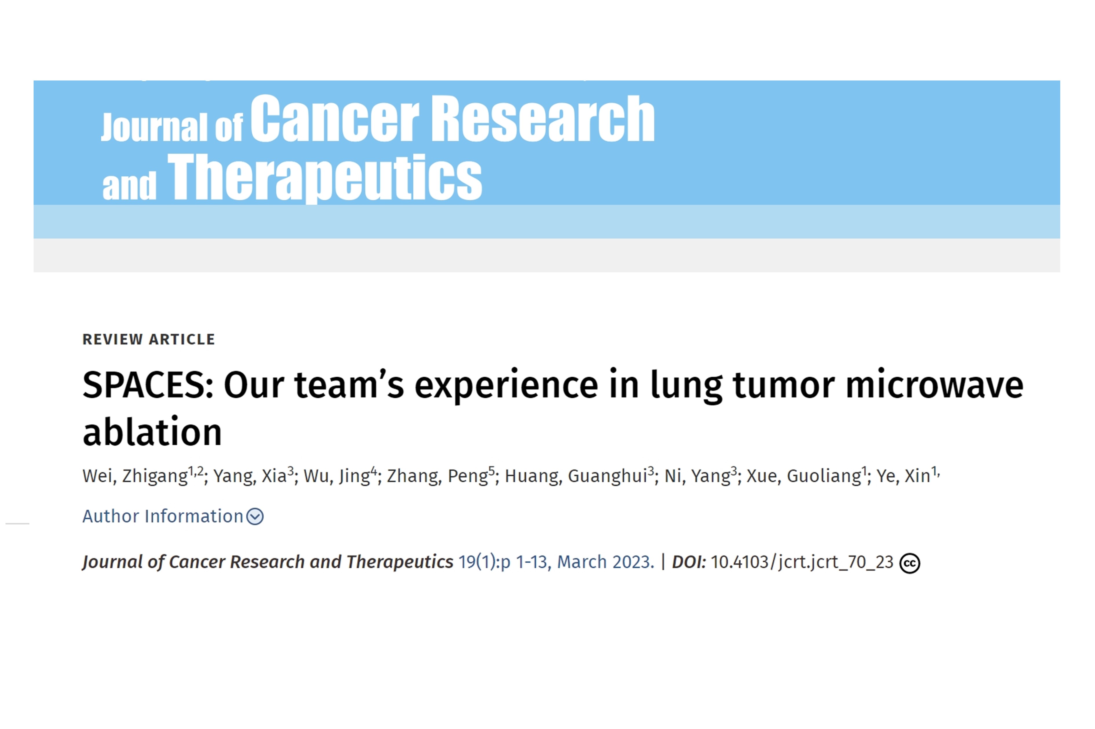叶欣教授及团队将十几年的肺部消融技术经验总结为“SPACES”(Selection,Procedure,Assessment,Complication,Evaluation,Systemic therapy)。“SPACES”方案对开展热消融治疗肺部肿瘤工作起到积极的促进作用。