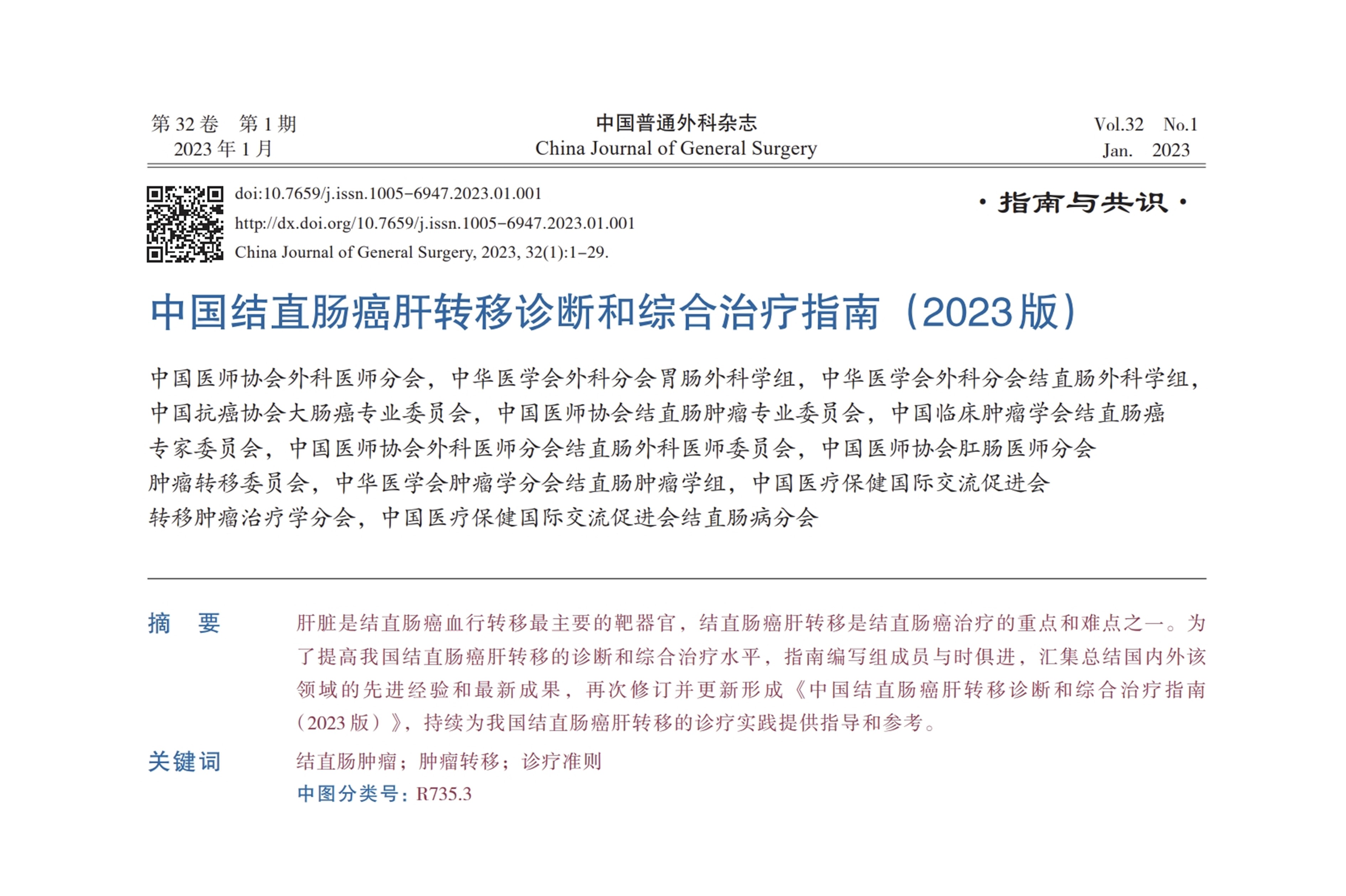为了提高我国结直肠癌肝转移的诊断和综合治疗水平,指南编写组成员汇集总结国内外该领域的先进经验和最新成果,再次修订并更新形成《中国结直肠癌肝转移诊断和综合治疗指南(2023版)》,为我国结直肠癌肝转移的诊疗...
