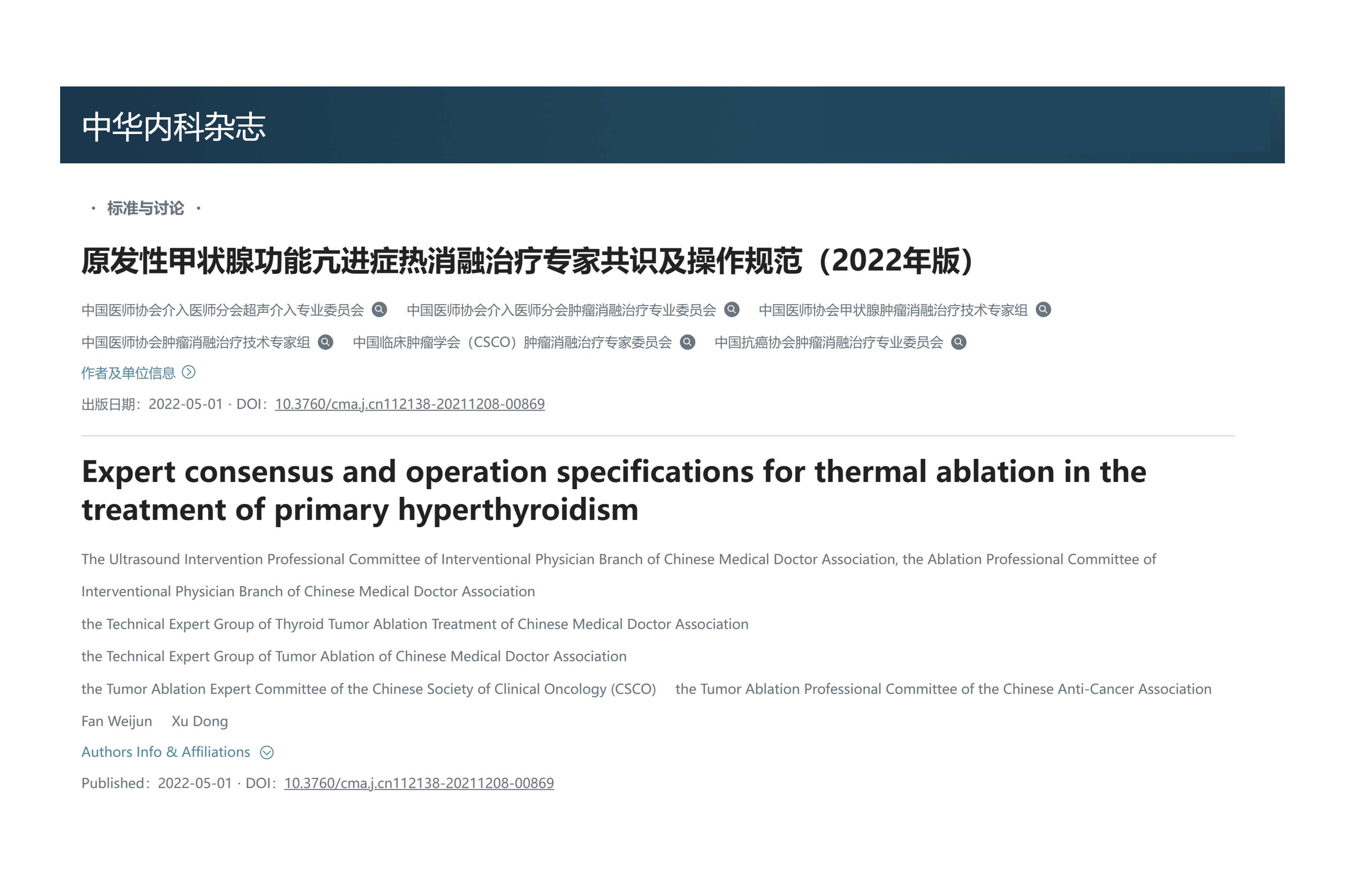 中国医师协会介入医师分会超声介入专业委员会,中国医师协会介入医师分会肿瘤消融治疗专业委员会,中国医师协会甲状腺肿瘤消融治疗技术专家组,中国医师协会肿瘤消融治疗技术专家组,中国临床肿瘤学会(CSCO)肿瘤消...